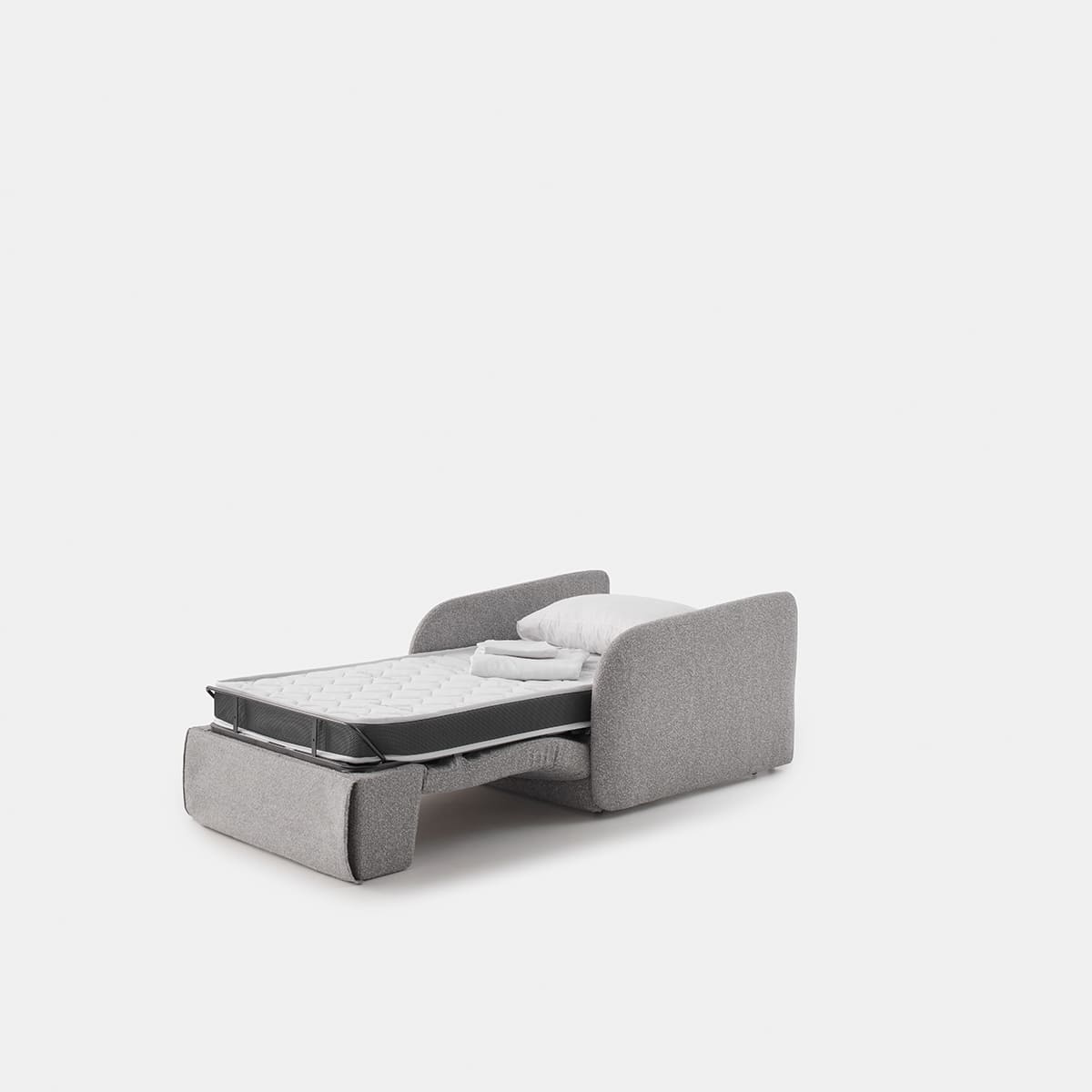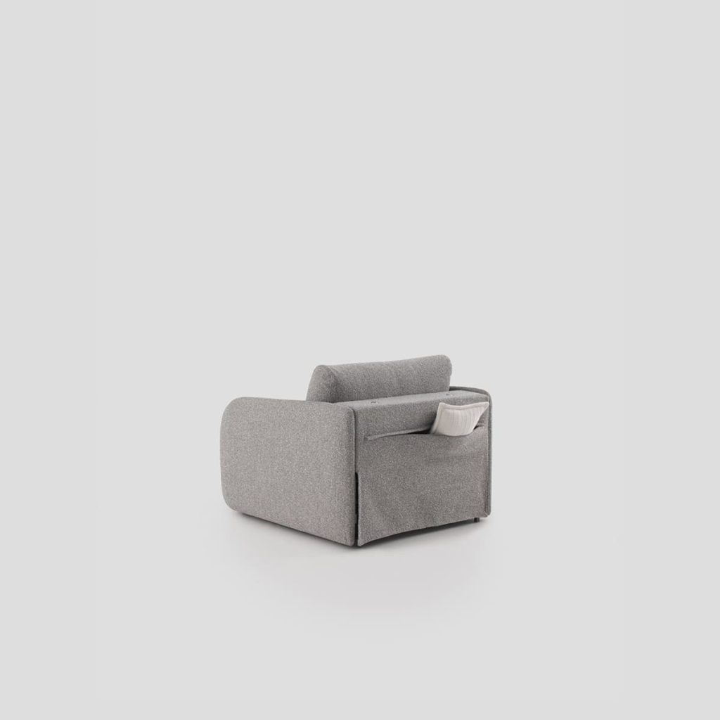 Canapés au design arrondi qui permettent’avoir un matelas totalement indépendant de la zone de siège dans le moins d’espace possible. Ils disposent également d’un tiroir pour ranger les oreillers et les draps du lit. Le modèle Pop se présente avec un accoudoir haut, tandis que celui du modèle Indie va au ras du siège.
