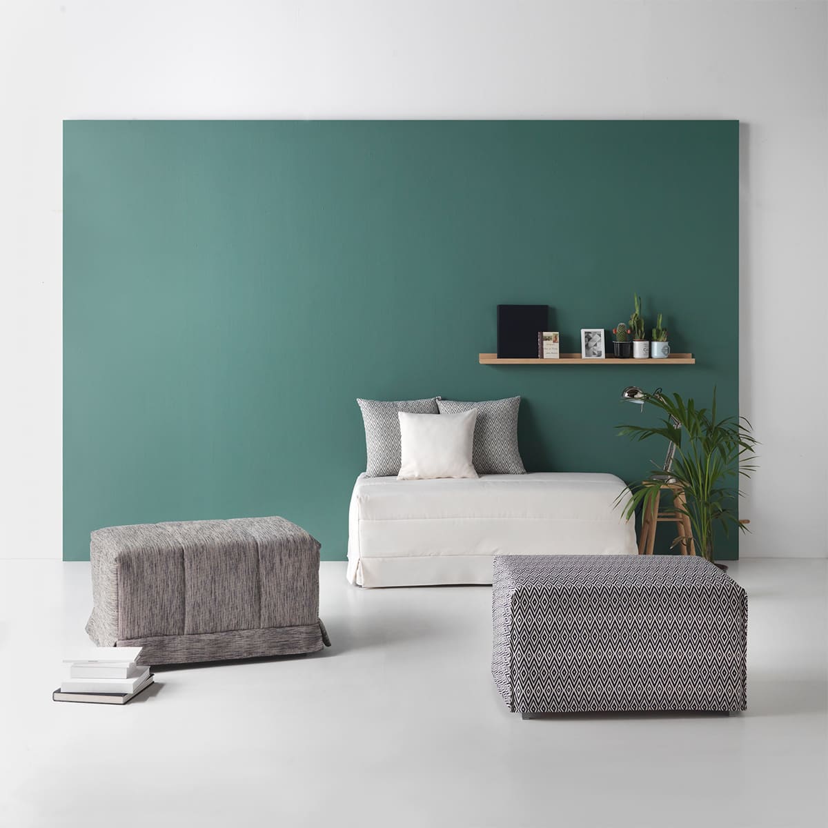 Il a un lit d’appoint qui occupe le minimumd’espace quand il n’est pas fait usage de lui, étant une pièce de plus dans la décoration d’un séjour. Liv et Box, deux versions de housses pour que vous puissiez choisir le style final qui vous plait le plus.