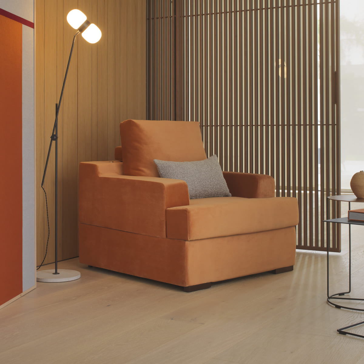 • Brazos: estructura de madera, confeccionada con poliuretano de 30 kg/m3 recubierto de fibra